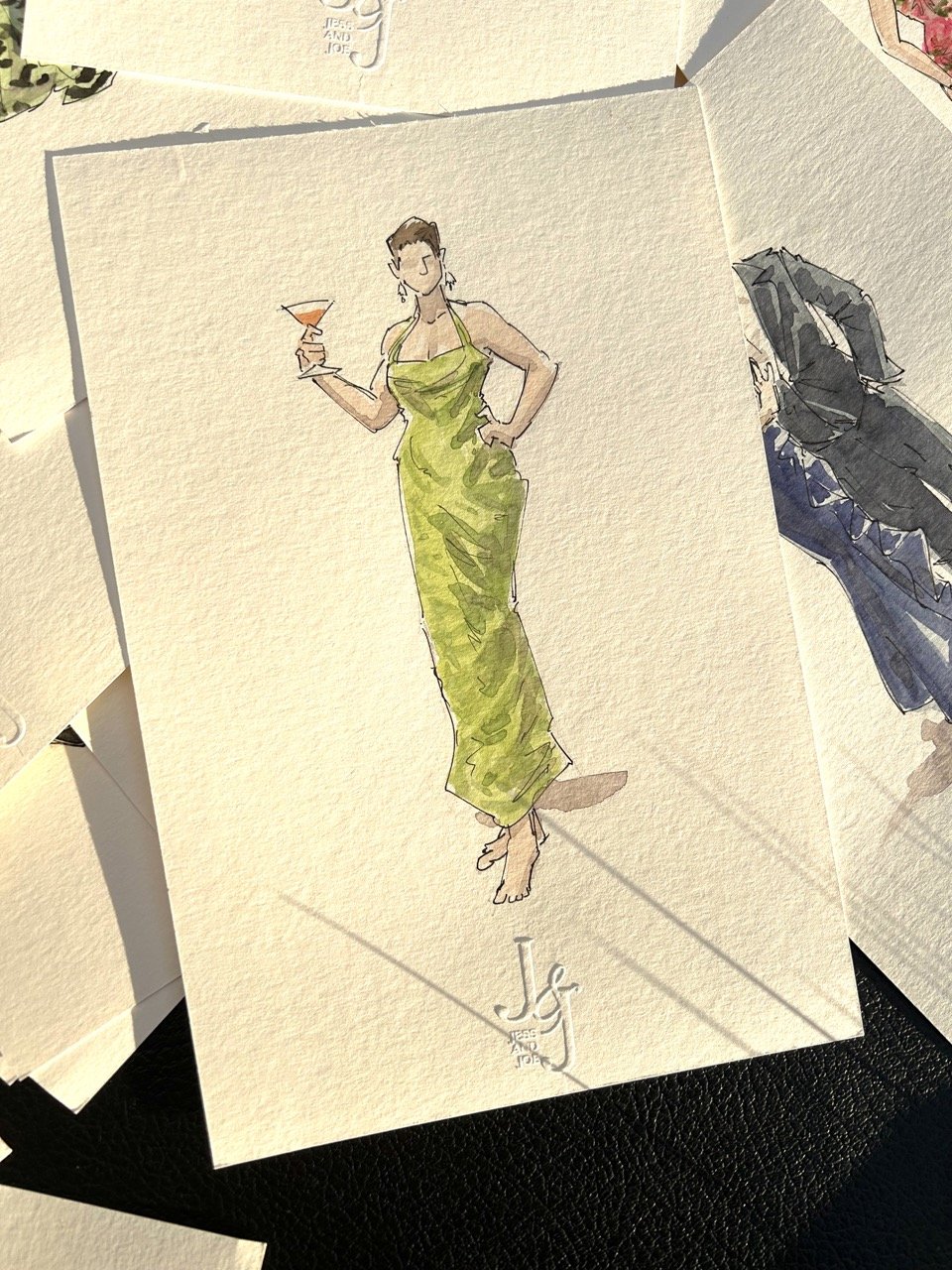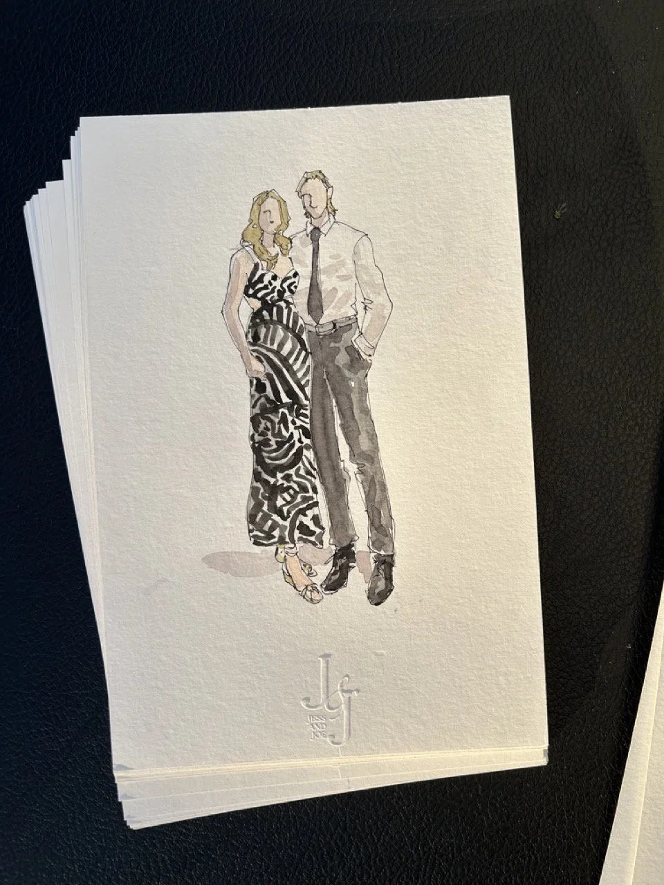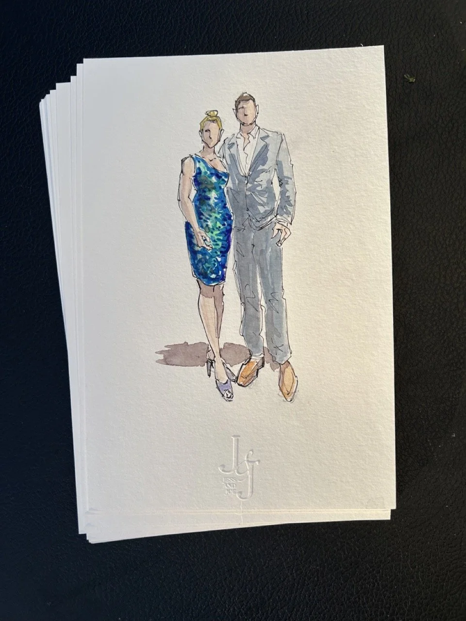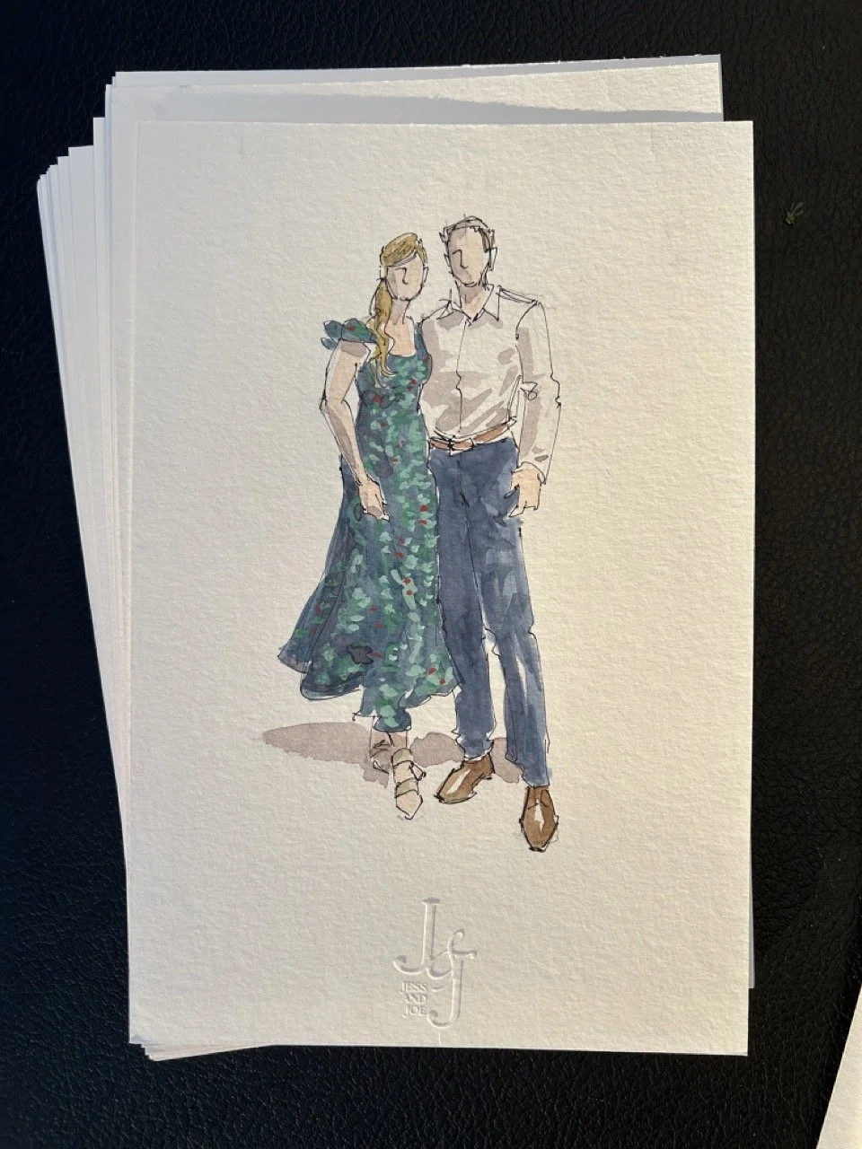 Elegant, minimal, and full of character. Our signature style blends gesture drawing with fashion illustration to create expressive, intentional sketches. Each portrait features fluid ink lines, soft watercolor washes, and delicately suggested features.
